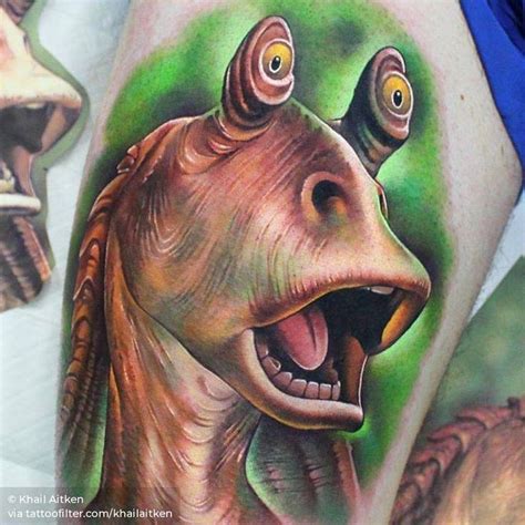 Jar Jar Binks Tattoo. Web he is 42 and has a huge tattoo of jar jar binks on his back that was done by chris dingwell of squirrel cage studios on. Web binks, a key character in the 1999 film, star wars: