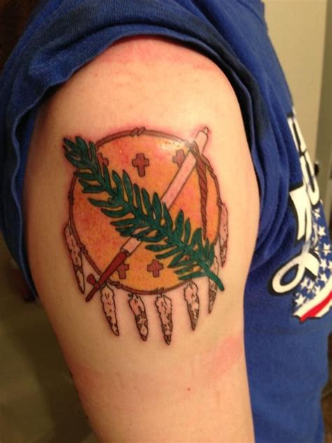 Oklahoma Flag Tattoo. Web jordan winn’s new tulsa flag tattoo is “a simple, straightforward design” with “a nod to the oklahoma flag,” he said. Web oklahoma symbols such as the state bird, flower, and flag are popular in tattoo designs.