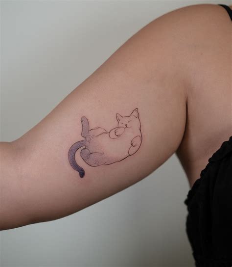 Sleeping Cat Tattoo. Web a mini cat tattoo for females. Web the best cat tattoo designs now run the gamut from small, delicate outlines to full sleeves with photorealistic.