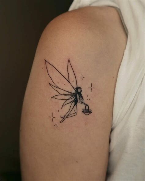Fairy tattoo, stars, pink and blue wings Small Fairy Tattoos, Fairy